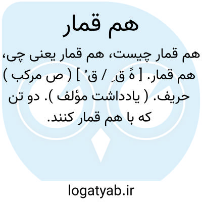هم قمار. [ هََ ق ِ / ق ُ ] ( ص مرکب ) حریف. ( یادداشت مؤلف ). دو تن که با هم قمار کنند.