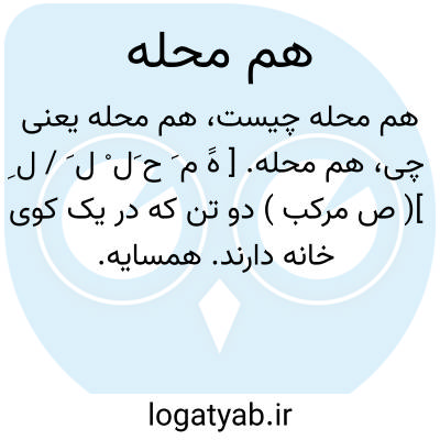 هم محله. [ هََ م َ ح َل ْ ل َ / ل ِ ]( ص مرکب ) دو تن که در یک کوی خانه دارند. همسایه.