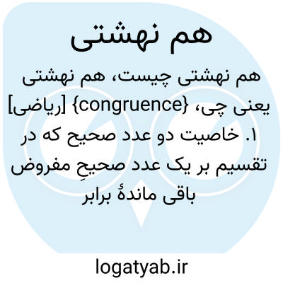 {congruence} [ریاضی] 1. خاصیت دو عدد صحیح که در تقسیم بر یک عدد صحیحِ مفروض باقی ماندۀ برابر داشته باشند 2. انطباق پذیری دو شکل هندسی تحت یک تبدیل صلب (rigid transformation )