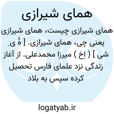 همای شیرازی. [ هَُ ی ِ شی ] ( اِخ ) میرزا محمدعلی. از آغاز زندگی نزد علمای فارس تحصیل کرده سپس به بلاد عراق آمد و در تهران ساکن شد و مدتی بعد به اصفهان رفت. وی از معاصران رضاقلیخان هدایت مؤلف مجمعالفصحاء بوده است. این غزل از اوست: