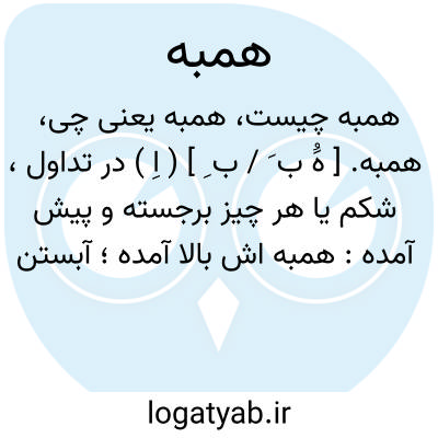 همبه. [ هَُ ب َ / ب ِ ] ( اِ ) در تداول، شکم یا هر چیز برجسته و پیش آمده: همبه اش بالا آمده؛ آبستن است. ( یادداشت مؤلف ).