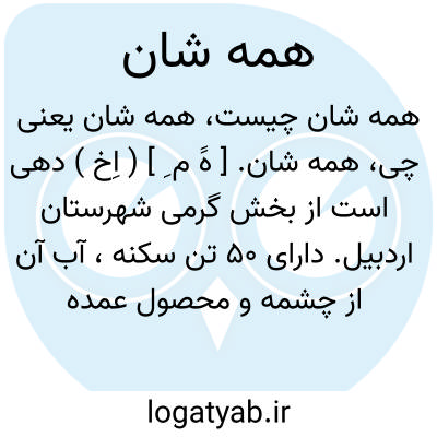 همه شان. [ هََ م ِ ] ( اِخ ) دهی است از بخش گرمی شهرستان اردبیل. دارای 50 تن سکنه، آب آن از چشمه و محصول عمده اش غله و حبوب است. ( از فرهنگ جغرافیایی ایران ج 4 ).