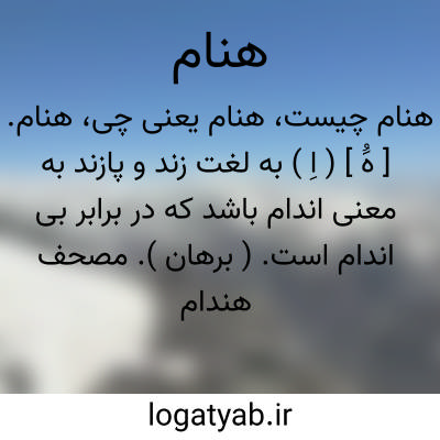 هنام. [ هَُ ] ( اِ ) به لغت زند و پازند به معنی اندام باشد که در برابر بی اندام است. ( برهان ). مصحف هندام پهلوی به معنی اندام است. ( از حاشیه برهان چ معین ).