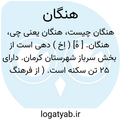 هنگان. [ هََ] ( اِخ ) دهی است از بخش سرباز شهرستان کرمان. دارای 25 تن سکنه است. ( از فرهنگ جغرافیایی ایران ج 8 ).