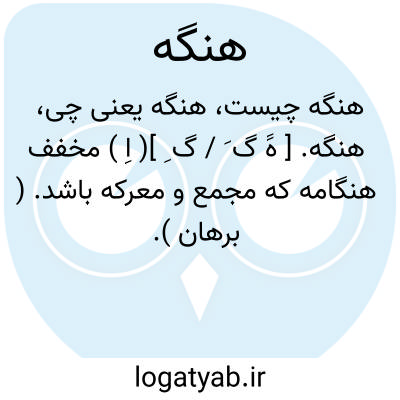 هنگه. [ هََ گ َ / گ ِ ]( اِ ) مخفف هنگامه که مجمع و معرکه باشد. ( برهان ).