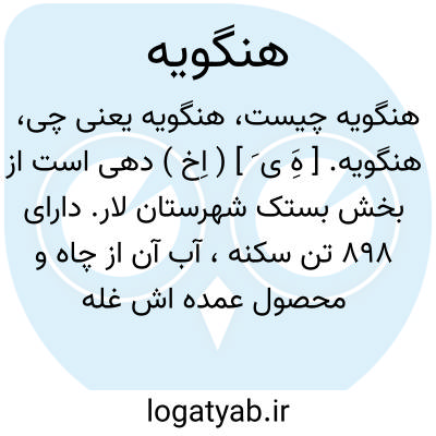 هنگویه. [ هَِ ی َ ] ( اِخ ) دهی است از بخش بستک شهرستان لار. دارای 898 تن سکنه، آب آن از چاه و محصول عمده اش غله،خرما و صیفی است. ( از فرهنگ جغرافیایی ایران ج 7 ).
