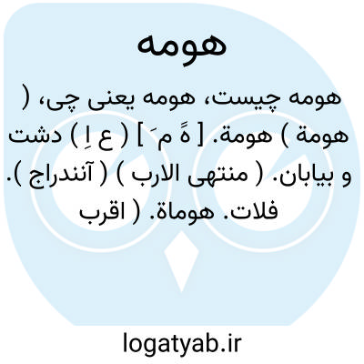 ( هومة ) هومة. [ هََ م َ ] ( ع اِ ) دشت و بیابان. ( منتهی الارب ) ( آنندراج ). فلات. هوماة. ( اقرب الموارد ).