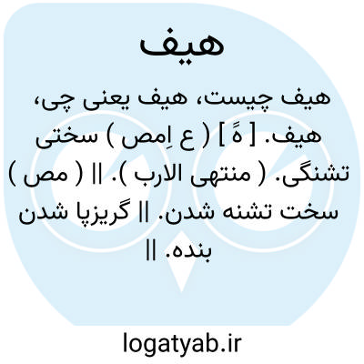 هیف. [ هََ ] ( ع اِمص ) سختی تشنگی. ( منتهی الارب ). || ( مص ) سخت تشنه شدن. || گریزپا شدن بنده. || لاغرشکم و باریک میان گردیدن. ( اقرب الموارد ). || ( اِ ) باد گرم که از جانب یمن وزد و آن نکبا است میان جنوب و دبور و نباتات و آب را خشک گرداند و حیوانات را تشنه کند. ( منتهی الارب ). باد گرم و آن باد که میان جنوب و دبور جهد. ( مهذب الاسماء ). رجوع به هَیَف شود.