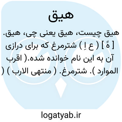 هیق. [ هََ ] ( ع اِ ) شترمرغ که برای درازی آن به این نام خوانده شده.( اقرب الموارد ). شترمرغ. ( منتهی الارب ) ( آنندراج ).