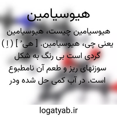 هیوسیامین. [ هی ُ ] ( اِ ) گردی است بی رنگ به شکل سوزنهای ریز و طعم آن نامطبوع است. در آب کمی حل شده ودر الکل و اتر و کلروفرم بخوبی محلول است. معمولاً سولفات هیوسیامین را که تنها ملح افینیال آن است در تراپوتیک به کار می برند. سولفات هیوسیامین به شکل سوزنهای ریز سفیدی متبلور شده در آب بخوبی محلول و 81 درصد هیوسیامین دارد. این دارو حدقه را سریعتر از اتروپین متسع میکند و برای این کار چند قطره از محلول پنج سانتی گرم سولفات هیوسیامین در ده گرم آب کفایت میکند. این دارو را در تمام مواردی که ژوسکیام به کار برده میشود میتوان استعمال نمود. میزان معمولی استعمال آن ربع میلی گرم تا نیم میلی گرم و حداکثر مقدار استعمال آن در یک بار نیم میلی گرم و در 24 ساعت یک گرم است. ( درمان شناسی ج 1 ).