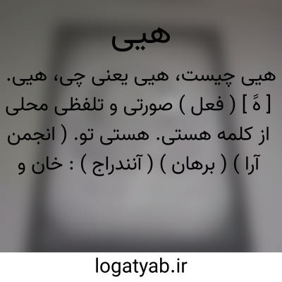 هیی. [ هََ ] ( فعل ) صورتی و تلفظی محلی از کلمه هستی. هستی تو. ( انجمن آرا ) ( برهان ) ( آنندراج ):