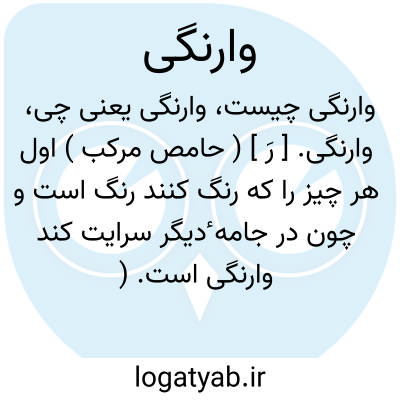 وارنگی. [ رَ ] ( حامص مرکب ) اول هر چیز را که رنگ کنند رنگ است و چون در جامه ٔدیگر سرایت کند وارنگی است. ( آنندراج ):