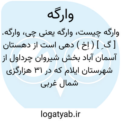 وارگه. [ گ ِ ] ( اِخ ) دهی است از دهستان آسمان آباد بخش شیروان چرداول از شهرستان ایلام که در 31 هزارگزی شمال غربی چرداول و کنار راه اتومبیل رو چرداول به ایلام واقع است. ناحیه ای است کوهستانی، سردسیر و دارای 500 تن سکنه. آب آنجا از چشمه و چاه است. محصولات آن غلات و حبوبات و لبنیات میباشد. و شغل اهالی زراعت و گله داری است. ( از فرهنگ جغرافیائی ایران ج 5 ).