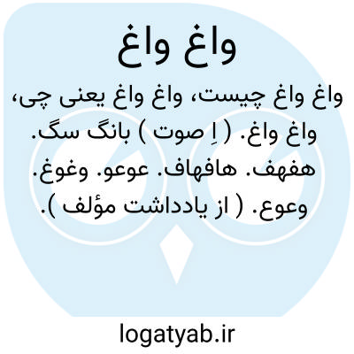 واغ واغ. ( اِ صوت ) بانگ سگ. هفهف. هافهاف. عوعو. وغوغ. وعوع. ( از یادداشت مؤلف ).