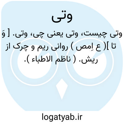 وتی. [ وَ تا ]( ع اِمص ) روانی ریم و چرک از ریش. ( ناظم الاطباء ).