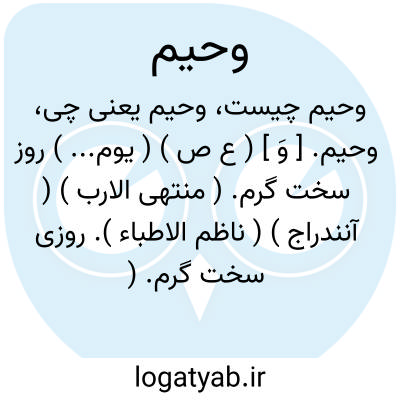 وحیم. [ وَ ] ( ع ص ) ( یوم... ) روز سخت گرم. ( منتهی الارب ) ( آنندراج ) ( ناظم الاطباء ). روزی سخت گرم. ( مهذب الاسماء ).