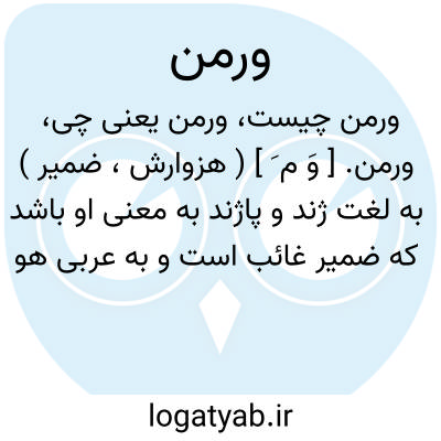 ورمن. [ وَ م َ ] ( هزوارش، ضمیر ) به لغت ژند و پاژند به معنی او باشد که ضمیر غائب است و به عربی هو میگویند. ( ناظم الاطباء ) ( برهان ).