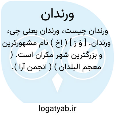 لغت نامه دهخدا ورندان. [ وَ رَ ] ( اِخ ) نام مشهورترین و بزرگترین شهر مکران است. ( معجم البلدان ) ( انجمن آرا ).