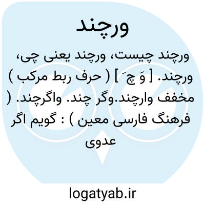 ورچند. [ وَ چ َ ] ( حرف ربط مرکب ) مخفف وارچند.وگر چند. واگرچند. ( فرهنگ فارسی معین ):