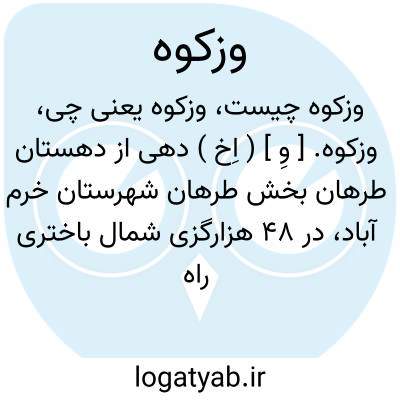 وزکوه. [ وِ ] ( اِخ ) دهی از دهستان طرهان بخش طرهان شهرستان خرم آباد، در 48 هزارگزی شمال باختری راه فرعی خرم آباد به کوهدشت. سکنه آن 240تن و آب آن از چشمه ها و چاه تأمین می شود. محصول آنجا غلات، لبنیات و شغل اهالی زراعت و گله داری است. راه اتومبیل رو دارد. ( از فرهنگ جغرافیایی ایران ج 6 ).