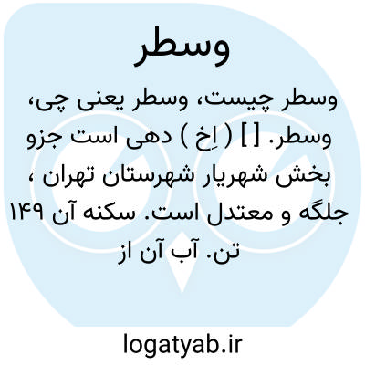 وسطر. [ ] ( اِخ ) دهی است جزو بخش شهریار شهرستان تهران، جلگه و معتدل است. سکنه آن 149 تن. آب آن از قنات و محصول آنجا غلات، چغندرقند، باغات انگور و شغل اهالی زراعت است. تپه ای از آثار قدیم در اراضی آن دیده میشود. راه مالرو دارد و از طریق علیشاه عوض و فردوس میتوان ماشین برد. ( از فرهنگ جغرافیایی ایران ج 1 ).