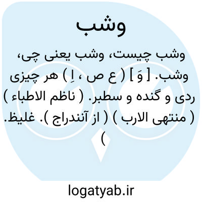 وشب. [ وَ ] ( ع ص، اِ ) هر چیزی ردی و گنده و سطبر. ( ناظم الاطباء ) ( منتهی الارب ) ( از آنندراج ). غلیظ. ( اقرب الموارد ). || گروه مردم از هر جنس. ج، اوشاب. ( ناظم الاطباء ).