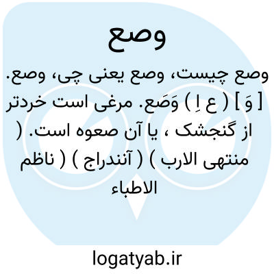 وصع. [ وَ ] ( ع اِ ) وَصَع. مرغی است خردتر از گنجشک، یا آن صعوه است. ( منتهی الارب ) ( آنندراج ) ( ناظم الاطباء ) ( اقرب الموارد ). ج، وِصْعان. ( منتهی الارب ) ( ناظم الاطباء ). || گنجشک ریزه. ( منتهی الارب ) ( آنندراج ). || ( مص ) فراگرفتن و پوشانیدن. ( منتهی الارب ). و فعل آن از باب فتح آید. ( منتهی الارب ) ( ناظم الاطباء ). پوشاندن و پنهان کردن و فراگرفتن. ( ناظم الاطباء ). پنهان کردن. ( اقرب الموارد ).