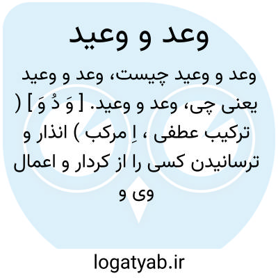 وعد و وعید. [ وَ دُ وَ ] ( ترکیب عطفی، اِ مرکب ) انذار و ترسانیدن کسی را از کردار و اعمال وی و نوید خیر و شر. ( ناظم الاطباء ):