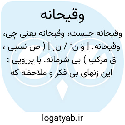 وقیحانه. [ وَ ن َ / ن ِ ] ( ص نسبی، ق مرکب ) بی شرمانه. با پررویی: این زنهای بی فکر و ملاحظه که قبل از گذشتن یک هفته چنان وقیحانه به هم پریده بودند... ( شوهر آهوخانم ص 330 از فرهنگ فارسی معین ).