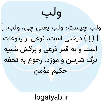 ولب. [ ] ( اِ ) درختی است. نوعی از یتوعات است و به قدر ذرعی و برگش شبیه برگ شربین و مورْد. رجوع به تحفه حکیم مؤمن شود.