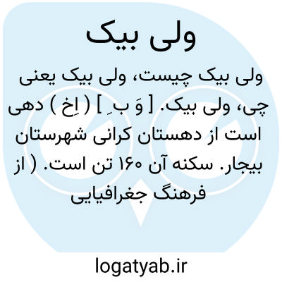 ولی بیک. [ وَ ب ِ ] ( اِخ ) دهی است از دهستان کرانی شهرستان بیجار. سکنه آن 160 تن است. ( از فرهنگ جغرافیایی ایران ج 5 ).