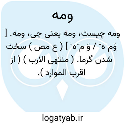 ومه. [ وَم ْه ْ / وَ م َه ْ ] ( ع مص ) سخت شدن گرما. ( منتهی الارب ) ( از اقرب الموارد ).