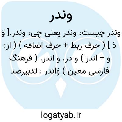 وندر.[ وَ دَ ] ( حرف ربط + حرف اضافه ) ( از: و + اندر ) و در. و اندر. ( فرهنگ فارسی معین ) وَاندر: