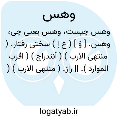 وهس. [ وَ ] ( ع اِ ) سختی رفتار. ( منتهی الارب ) ( آنندراج ) ( اقرب الموارد ). || راز. ( منتهی الارب ) ( آنندراج ). || رفتار سخت. || ( مص ) شتافتن. || دست درازی نمودن بر خویش و تبار. || حیله نمودن. ( منتهی الارب ) ( آنندراج ) ( اقرب الموارد ). || سخن چینی کردن. ( منتهی الارب ) ( آنندراج ). || کوفتن و شکستن زیر پای. ( منتهی الارب ) ( آنندراج ) ( از اقرب الموارد ). و فعل آن از باب ضرب آید. ( منتهی الارب ).