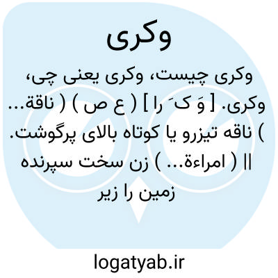 وکری. [ وَ ک َ را ] ( ع ص ) ( ناقة... ) ناقه تیزرو یا کوتاه بالای پرگوشت. || ( امراءة... ) زن سخت سپرنده زمین را زیر پای. || ( اِ ) نوعی از دویدن اسب و شتر. ( از منتهی الارب ) ( از اقرب الموارد ) ( از آنندراج ). رجوع به وکر شود.