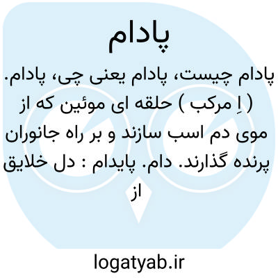 پادام. ( اِ مرکب ) حلقه ای موئین که از موی دم اسب سازند و بر راه جانوران پرنده گذارند. دام. پایدام: