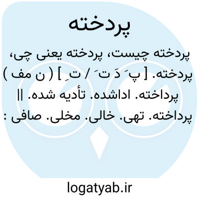 پردخته. [ پ َ دَ ت َ / ت ِ ] ( ن مف ) پرداخته. اداشده. تأدیه شده. || پرداخته. تهی. خالی. مخلی. صافی: