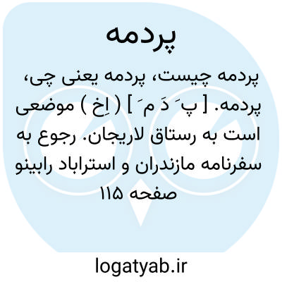 پردمه. [ پ َ دَ م َ ] ( اِخ ) موضعی است به رستاق لاریجان. رجوع به سفرنامه مازندران و استراباد رابینو صفحه 115 شود.