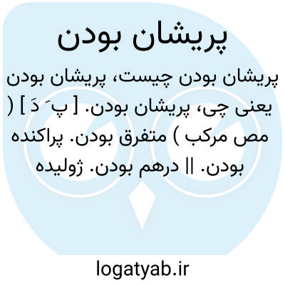پریشان بودن. [ پ َ دَ ] ( مص مرکب ) متفرق بودن. پراکنده بودن. || درهم بودن. ژولیده بودن. آشفته بودن. || اضطراب داشتن. متوحش بودن. خیالات واهی داشتن. سرگردان بودن. || غمناک بودن. دلتنگ بودن. || فقیر و تهی دست بودن. بدحال بودن. || افشانده بودن. از هم باز و پراکنده و متفرق بودن.