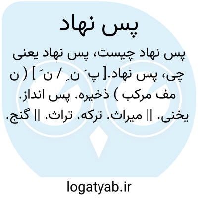 پس نهاد.[ پ َ ن ِ / ن َ ] ( ن مف مرکب ) ذخیره. پس انداز. یخنی. || میراث. ترکه. تراث. || گنج.