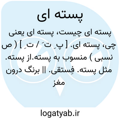 پسته ای. [ پ ِ ت َ / ت ِ ] ( ص نسبی ) منسوب به پسته.از پسته. مثل پسته. فِستقی. || برنگ درون مغز پسته. سبزی روشن چنانکه سبزه اول بهار. سبزی خوش. رنگی سبز که کمی بزردی زند. سبز پسته ای. || پسته فروش. || ( اِ ) دکان پسته فروش.
