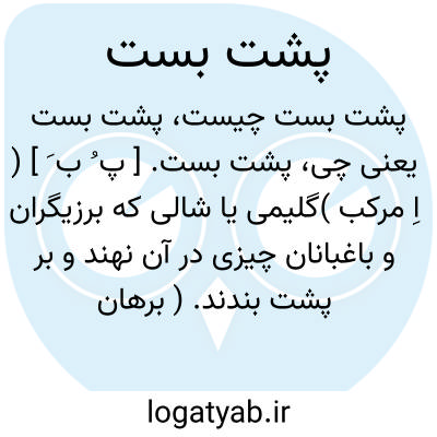 پشت بست. [ پ ُ ب َ ] ( اِ مرکب )گلیمی یا شالی که برزیگران و باغبانان چیزی در آن نهند و بر پشت بندند. ( برهان قاطع ). || گلیمی که زنان بر سرین بندند تا کلان نماید:
