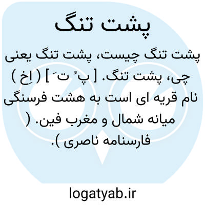 پشت تنگ. [ پ ُ ت َ ] ( اِخ ) نام قریه ای است به هشت فرسنگی میانه شمال و مغرب فین. ( فارسنامه ناصری ).
