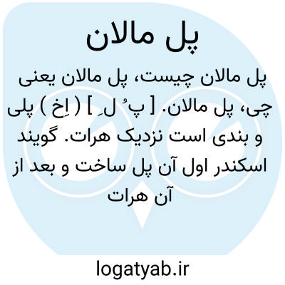 پل مالان. [ پ ُ ل ِ ] ( اِخ ) پلی و بندی است نزدیک هرات. گویند اسکندر اول آن پل ساخت و بعد از آن هرات را بنا کرد. ( آنندراج ). ونیز رجوع شود به حبیب السیر ج طهران جزء 3 از ج 3 ص 213 و 262 و 280 و 281 و 282 و اختتام ص 397 و 406.