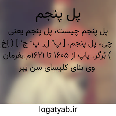 پل پنجم. [ پ ُ ل ِ پ َ ج ُ ] ( اِخ ) بُرگز. پاپ از 1605 تا 1621م.بفرمان وی بنای کلیسای سن پیر را به پایان بردند.