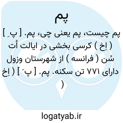 پم. [ پ ِ ] ( اِخ ) کرسی بخشی در ایالت اُت سُن ( فرانسه ) از شهرستان وزول دارای 771 تن سکنه.
