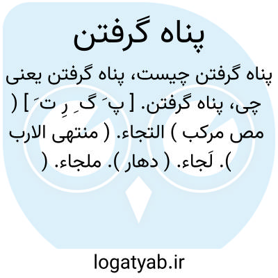 پناه گرفتن. [ پ َ گ ِ رِ ت َ ] ( مص مرکب ) التجاء. ( منتهی الارب ). لَجاء. ( دهار ). ملجاء. ( صراح اللغة ). عوذ. عیاذ. معاذ. معاذة. لوذ. لیاذ ( تاج المصادر ). تعوّذ. استعاذه. عصر. اعتصار. لوث. ( منتهی الارب ):