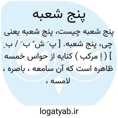 پنج شعبه. [ پ َ ش ُ ب َ / ب ِ ] ( اِ مرکب ) کنایه از حواس خمسه ظاهره است که آن سامعه، باصره، لامسه، ذائقه و شامه باشد. ( برهان قاطع ):