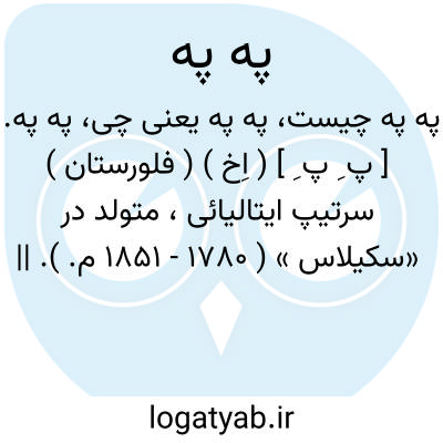 په په. [ پ ِ پ ِ ] ( اِخ ) ( فلورستان ) سرتیپ ایتالیائی، متولد در «سکیلاس » ( 1780 - 1851 م. ). || برادرش، گیوم وطن پرست و سرتیپ ( 1782 - 1855 م. ). این دو برادر در حکومت آزادی خواه سال 1820 م. شرکت کردند.