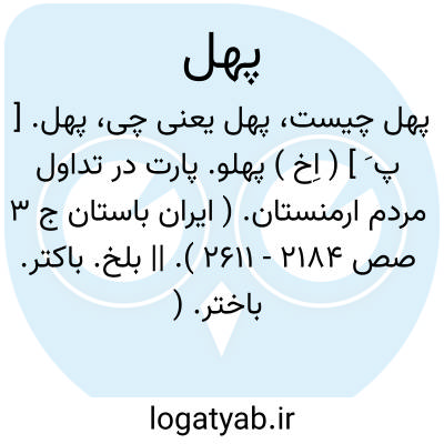 پهل. [ پ َ ] ( اِخ ) پهلو. پارت در تداول مردم ارمنستان. ( ایران باستان ج 3 صص 2184 - 2611 ). || بلخ. باکتر. باختر. ( ایران باستان ج 3 ص 2584 ).